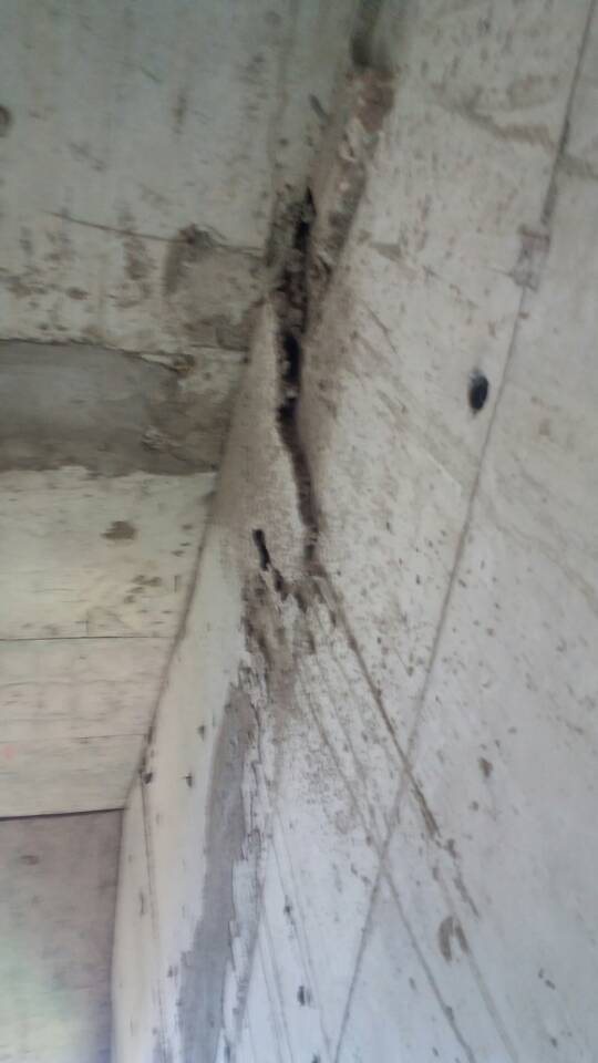 (7)构件超载引起的裂纹,例如:构件在超出设计的均布载荷或集中载荷作用下产生内力弯矩,出现垂直于构件纵轴的裂纹。并上下延伸。