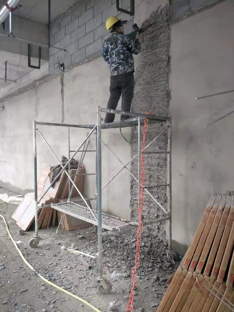 5、上升模型:将凸出的混凝土剔凿平,与平整部位的混凝土相等。上述工作应组织技术经验丰富、责任心强的工人和管理人员成立专门的维修小组,及时、快速、隐蔽。并随时检查,在保证混凝土结构质量合格的前提下,确保维修外观与正常部件一致。