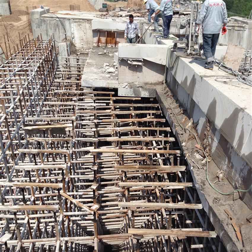 用破碎机将主跨合口段中部顶部和底部的混凝土切掉,以便于拆除预应力梁;钢管;将吊篮放在架子上,将两边的吊篮移动到指定位置,架好悬臂吊梁。如果桥面有纵坡,应采取措施防止悬臂吊梁滑落;从下到上删除合同部分的内部。刚性骨架使千斤顶的推力与预应力索形成水平力平衡;截断闭合段顶板上的预应力钢束,千斤顶逐渐回油数次,**松开闭合段,完成结构体系的改造。使用链式切割机切割合龙段的混凝土,由驳船运送。