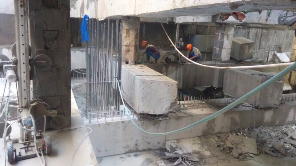 金刚石钢丝切割提供更快的速度、更大的灵活性和更低的施工噪音。尤其是在建筑改造工程中得到越来越多的应用。圆盘切割法打破了传统的气割或用气镐凿后定向爆破的施工方法。带有金刚石颗粒的切割盘用于切割。施工切口整齐平直,无需后处理,不受施工场地和环保的影响。 、工期、安全原因等条件,广泛应用于各种大型建筑物的结构改造和切割施工。钢丝切法设备由大功率液压机、传动定位滑轮和带金刚石锯齿的钢丝组成。液压马达通过传动皮带轮带动钢丝绕被切割物高速旋转进行切割,具有施工速度快、噪音小等优点。具有低、无振动、无粉尘和废气污染等优点,切口平直光滑,无需后处理。使用该技术,对于一些建设工期紧迫、环保要求高的工程,以及一些大型混凝土结构拆除、切割工程等有特殊要求的项目,这些问题都可以轻松解决。