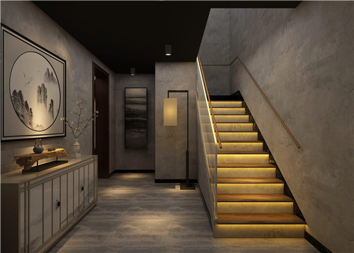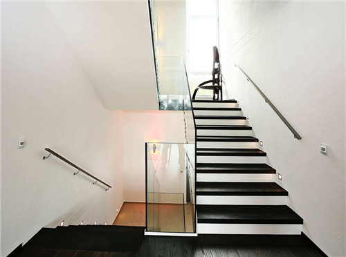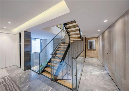 3、在设计楼梯时我们要根据室内装修风格确定楼梯的样式、材质,比如说后现代风可使用钢化玻璃、钢板装修楼梯等等。我们在装修楼梯时要做好楼梯灯光的处理,楼梯静音的处理工作等等,例如我们可考虑在楼梯踏步处安装感应灯等等。
