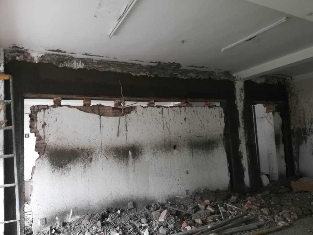 5、在工程施工过程中,专业人员应在被拆除的墙壁上洒水和除尘,以保护周围环境。