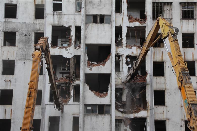 虽然用挖掘机拆除建筑物的速度较慢,但在楼层比较近的情况下还是比较安全的。