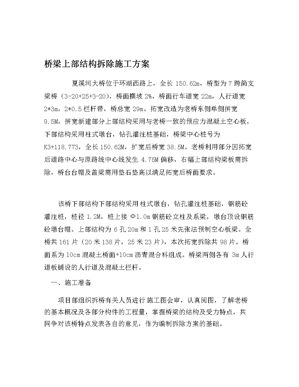 从钻孔桩到膨胀基础、承台、桥台、盖梁、主梁、桥面、栏杆配件,每一个部分都要提到施工方案。钢筋模板混凝土的施工过程可以在以上项目中描述;主体工程要细化,如林甸、东隅等主梁、大体积混凝土等,属于安全保障措施和技术保障措施的范围。由结构、下部结构和支撑组成。施工从下部结构开始:包括桥墩、桥台以及桥台和桥台的基础,所有这些都需要建造。支座主要传递上部荷载,连接桥跨结构和桥台,提供荷载传递路径,适应结构位移要求。有橡胶支座、钢支座、盆式支座等。上部结构又称桥跨结构,不同的桥型有不同的承重结构。这部分是设计的主要部分。