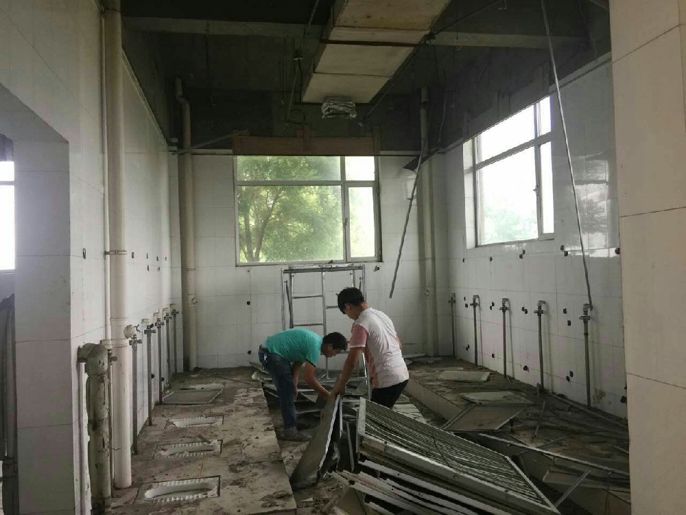 洗浴专用工具的拆装;先拆装洗浴用品,再拆吊顶。根据施工队的施工习惯,可以在所有墙壁上敲砖前统一拆除卫浴产品,也可以与敲砖交叉进行。拆卸卫浴产品时,一定要提前与房主沟通。如果必须保存和使用卫浴产品,在拆装时应注意不要损坏卫浴产品。并非所有沐浴产品都必须立即拆卸。马桶的拆卸和组装留待进行。项目施工期间,可以用木板等材料?;ぢ硗?,防止其被炸药砸坏。