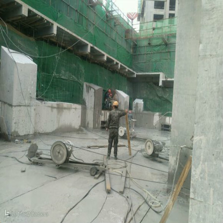 线锯 静态切割是由液压马达驱动金刚石线绕被切割物体高速行进并磨削至完成切割工作。由于金刚石颗粒用作研磨材料,它可以切割和分离钢筋混凝土等坚硬物体。