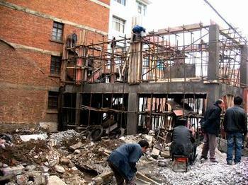5、在工程施工过程中,专业人员应在被拆除的墙壁上洒水和除尘,以?;ぶ芪Щ肪?。