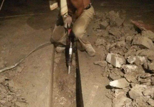 2.我们也可以用电锤,类似于冲击钻。使用这些工具,我们可以很快敲出水泥地面。