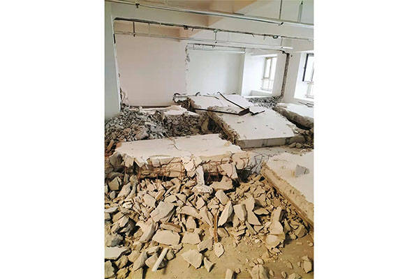 4.拆除楼板:不得损坏或加固楼板,以确保后续施工的安全?;炷谅グ宀鸪掷牒螅胙沟皆吹奈恢?,保证拆除不会损坏结构的周边部分。