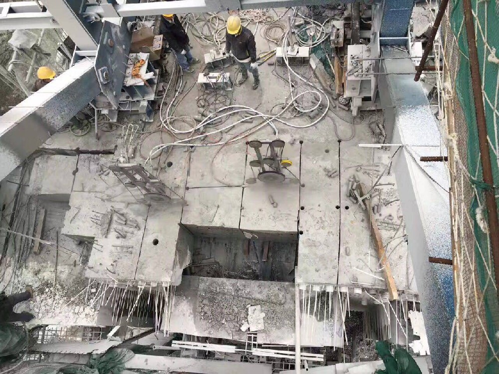 (1)按每一小块不超过500公斤为原则切割,切割后的混凝土块放在下一层楼或地面上。