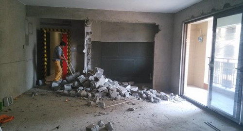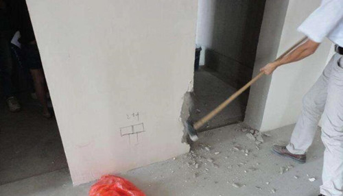 2.砸墙高度超过2.8米时,应先在顶部开一个口,从上面砸下去,这样做相对安全。