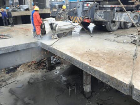 5、在混凝土切割施工的过程中,可以在混凝土的表面浇水,这样水分子就会渗入到混凝土的表层,可以将混凝土有效分解,表面的温度就会随之降低,然后会出现裂缝,这样更有利于桥梁的切割工作。