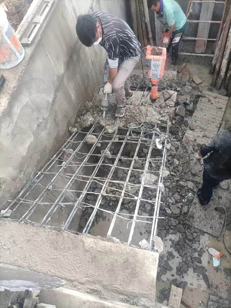 对原钢筋混凝土结构,采用金刚石碟式锯片切割,将原混凝土全部拆除,采用分段分块作业,切除时控制切割深度,不切入原结构。对原复杂混凝土结构,采用金刚石绳锯切割和金刚石筒锯钻孔机排孔钻切组合作业。