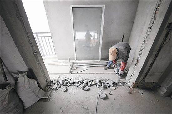 进入到施工阶段,主体拆改是最先上的一个项目,主要包括拆墙、砌墙、铲墙皮、拆暖气、换塑钢窗等等。