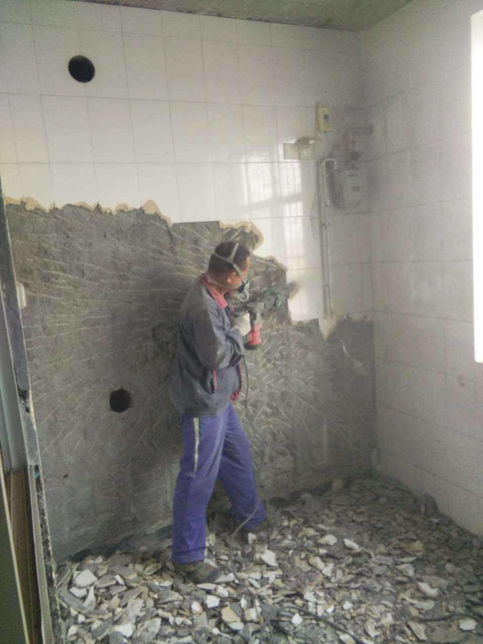 墙面瓷砖常见于厨房和卫生间等接触油污潮湿较多的环境内。墙瓷砖后面是用水泥砂浆当粘贴剂的,这一层与原来的墙面粘的不是很牢,只要出现开口,就会一片一片地脱落,但是想要顺利拆除还是很麻烦的一件事情。拆除过程中均会出现作为粘接剂的水泥灰不规则的依旧粘浮在原结构表面,要将连接不牢靠的部分做局部清理,否则会直接影响到后续施工。