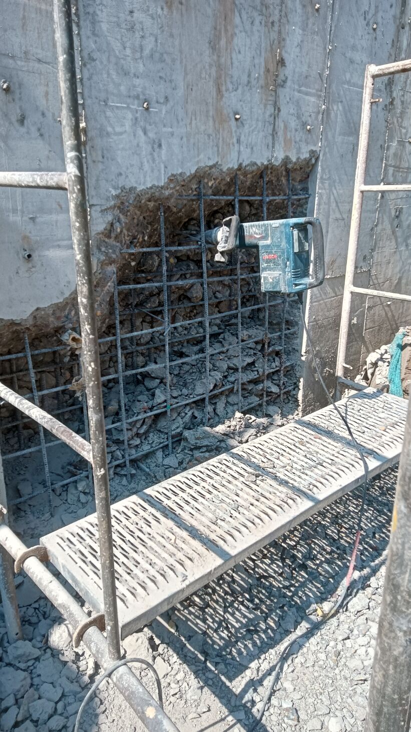 需要注意的是,对于一些大面积、高厚度的混凝土墙,或者需要使用爆破等方法进行拆除的特殊情况,使用电镐可能不适用,需要根据实际情况选择合适的拆除方法和工具。
